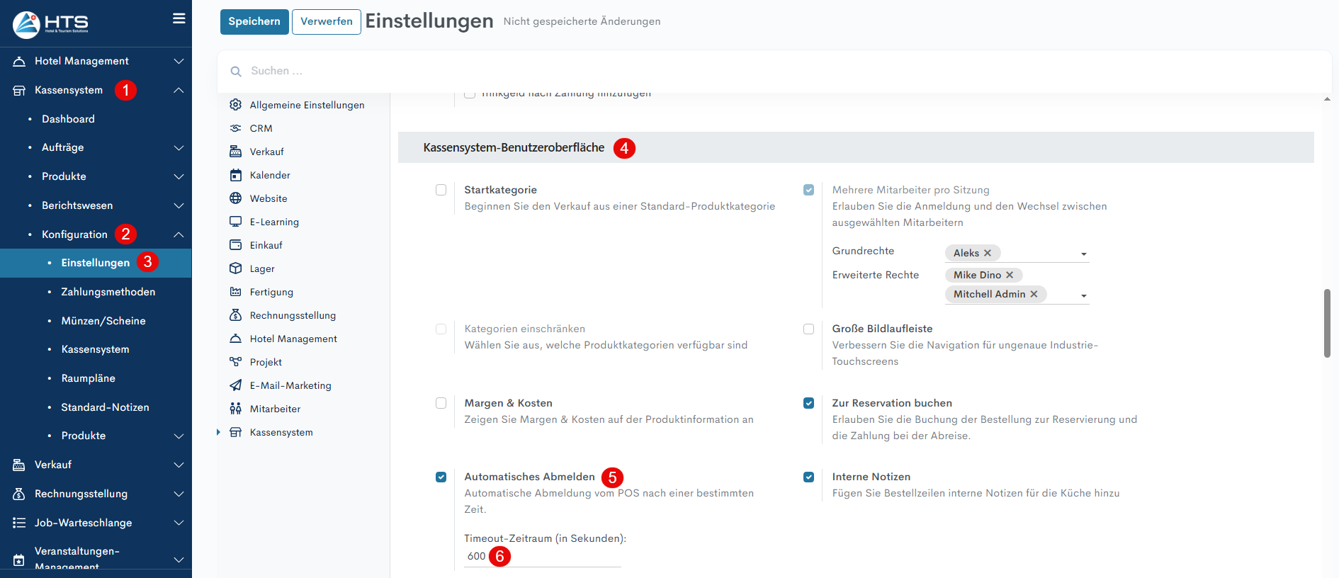- Scrollen Sie nach unten zum Abschnitt «Kassensystem-Benutzeroberfläche».