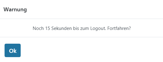 Wenn die Funktion aktiviert ist und die Kassensitzung aktiv ist, informiert das System den Benutzer 15 Sekunden vor Ablauf der Inaktivitätszeit über die bevorstehende Abmeldung.