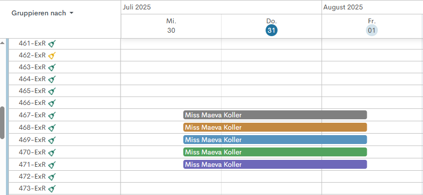 Im System gibt es sechs verschiedene Reservierungsstatus: Draft, Offer, Confirmed, Checked-In, Checked-Out, and Cancelled.. Jeder Status hat seine eigene Farbe in der „Raumplanung“ oder „Kanban-Ansicht“ auf der Registerkarte „Reservierungen“. Jede Reservierung im System hat einen Status, der ihren aktuellen Stand widerspiegelt und sich auf die Verfügbarkeit, die Kommunikation und die betrieblichen Arbeitsabläufe auswirkt. Nachfolgend finden Sie eine Übersicht über die verfügbaren Status: