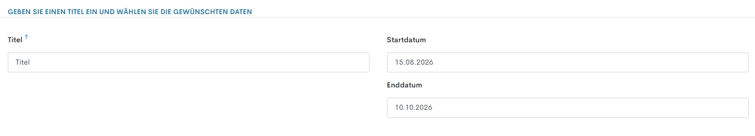 - Startdatum und Enddatum – Legen Sie den Zeitraum fest, in dem diese Option verfügbar ist. Das Enddatum muss am selben Tag oder nach dem Startdatum liegen.