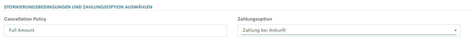 Die Spalten Stornierungsbedingung und Zahlungsoption sind optional und können je nach Konfiguration angezeigt oder ausgeblendet werden.