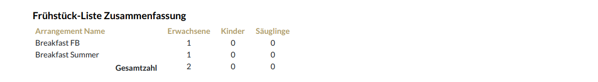 3. Frühstück Liste Zusammenfassung - das System zeigt die Gesamtzahl der Gäste für jede Frühstücksart an.