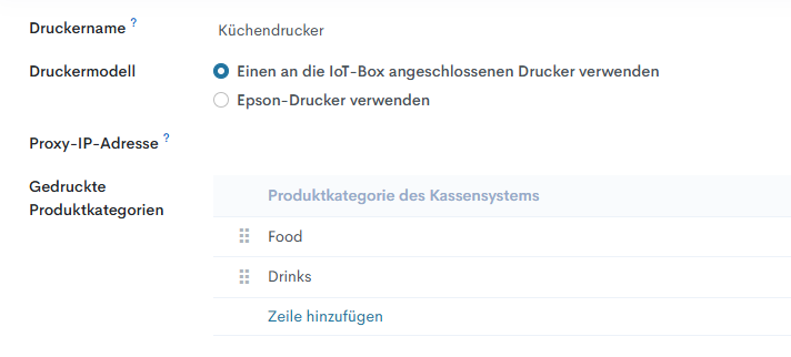 Um dies zu tun, klicken Sie im Feld «Gedruckte Produktkategorien» auf «Zeile hinzufügen».