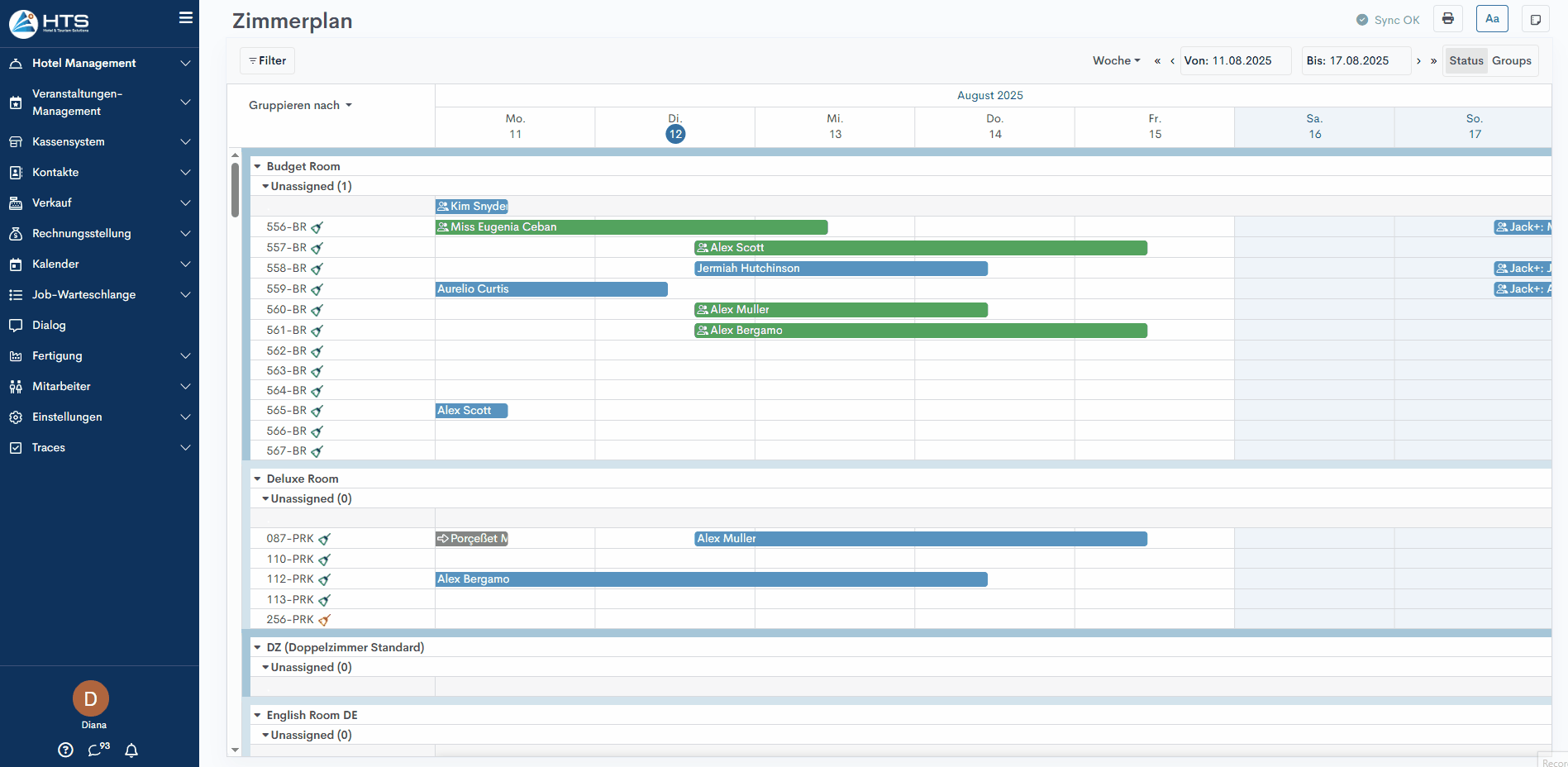- Zimmer - Zimmernummer einer bestimmten Reservation;