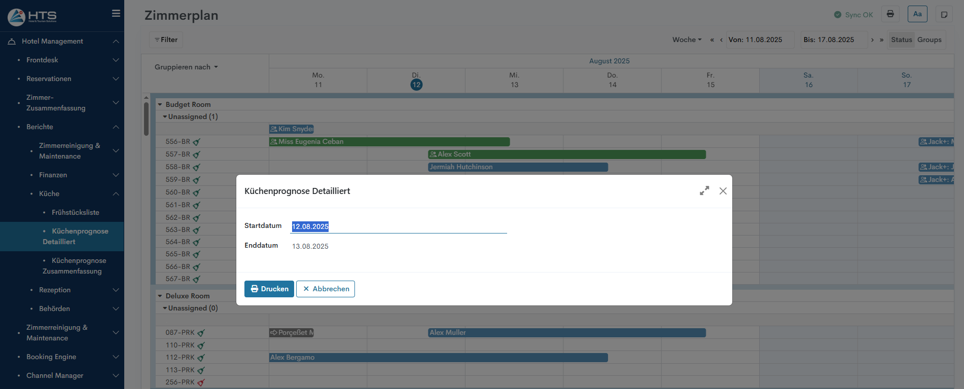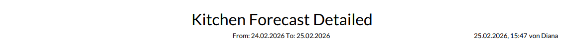 Alle Hotelberichte sind auf der Registerkarte "Berichte" im Modul "Hotelmanagement" verfügbar. Diese Berichte sind in verschiedene Abschnitte unterteilt - Küchenberichte, Front Office, Finanzen, etc. Um eine detaillierte Küchenprognose zu erstellen, gehen Sie folgendermaßen vor:
