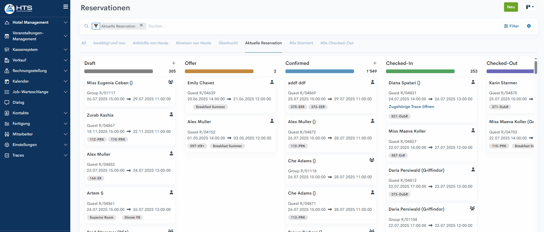 Anzeige in der Reservationsübersicht