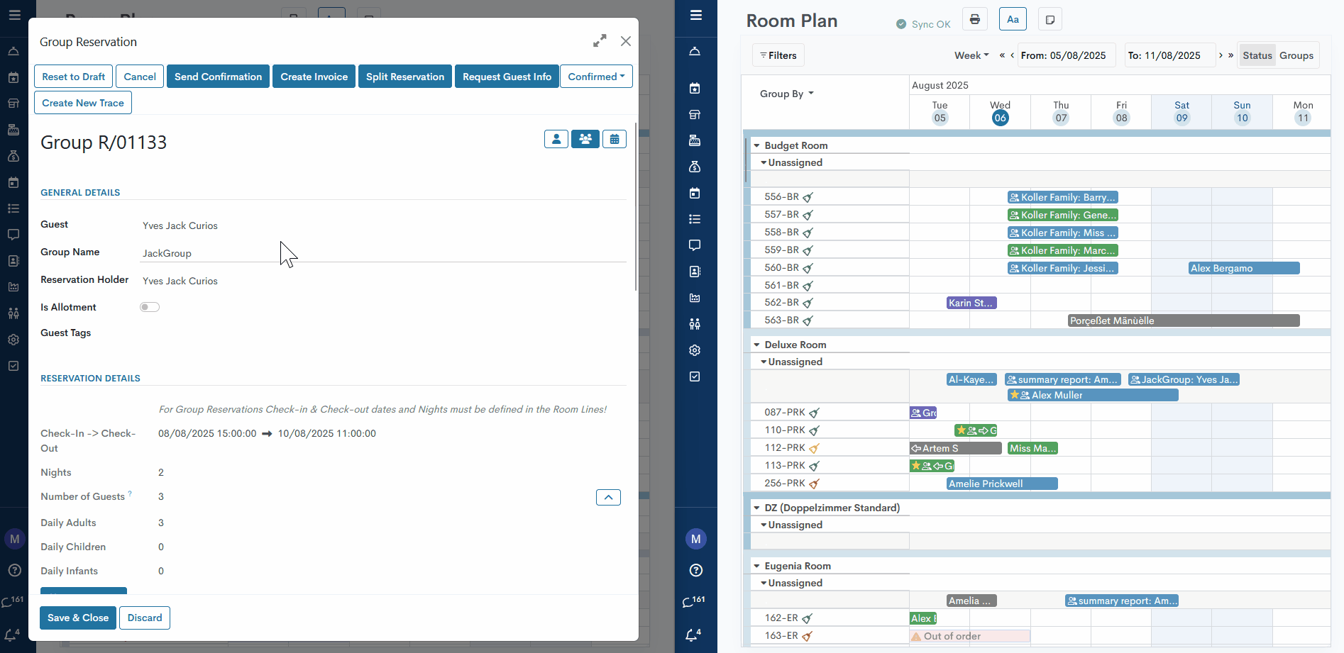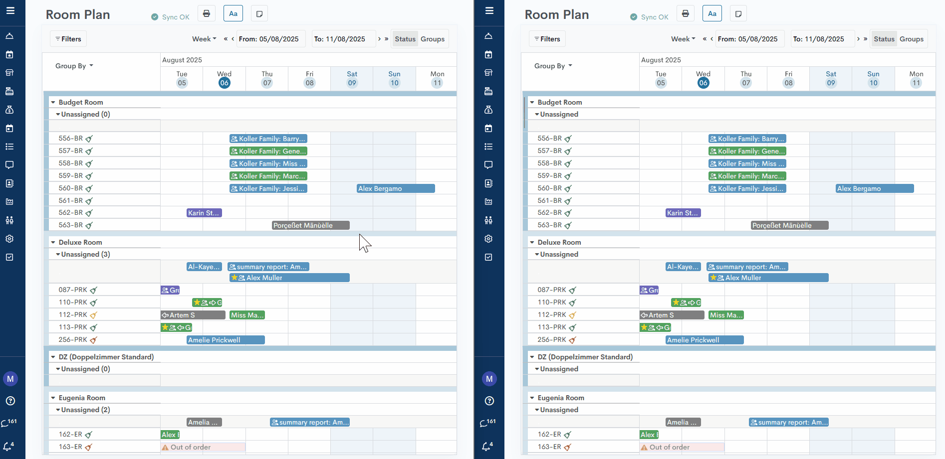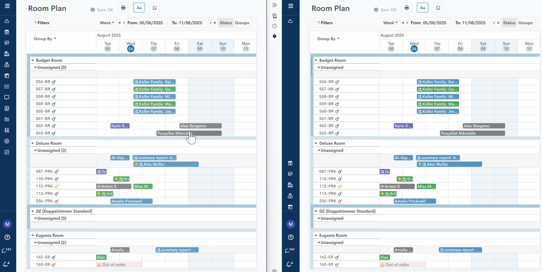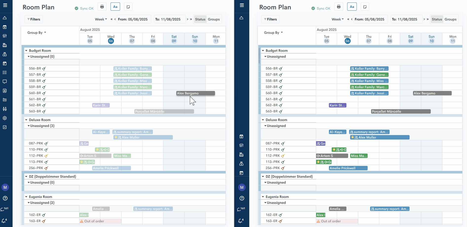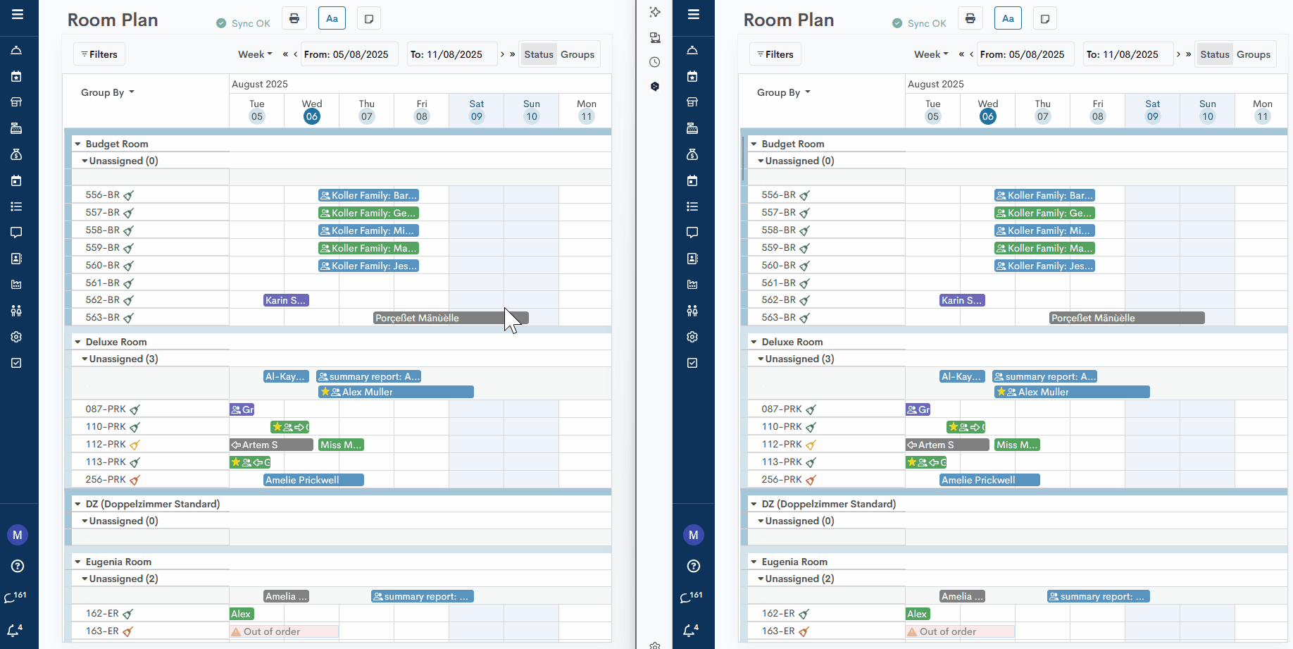 Also, Live Updates work for all fields that are present in the reservation pop-up on the room plan - status, reservation dates, room details, etc.