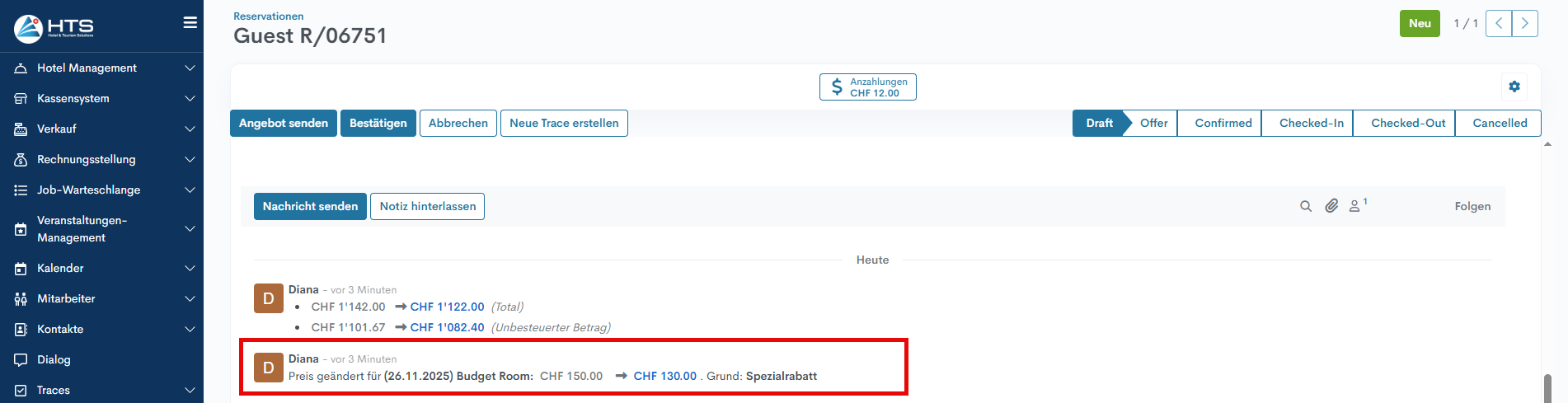 - Öffnen Sie eine bestehende Reservation oder erstellen Sie eine neue.