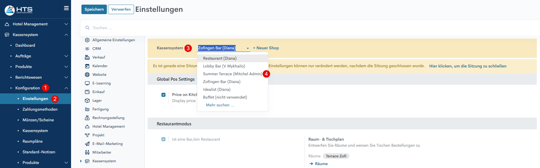 Wählen Sie im Feld «Kassensystem» den gewünschten Verkaufspunkt – z. B. Restaurant, Bar usw.
