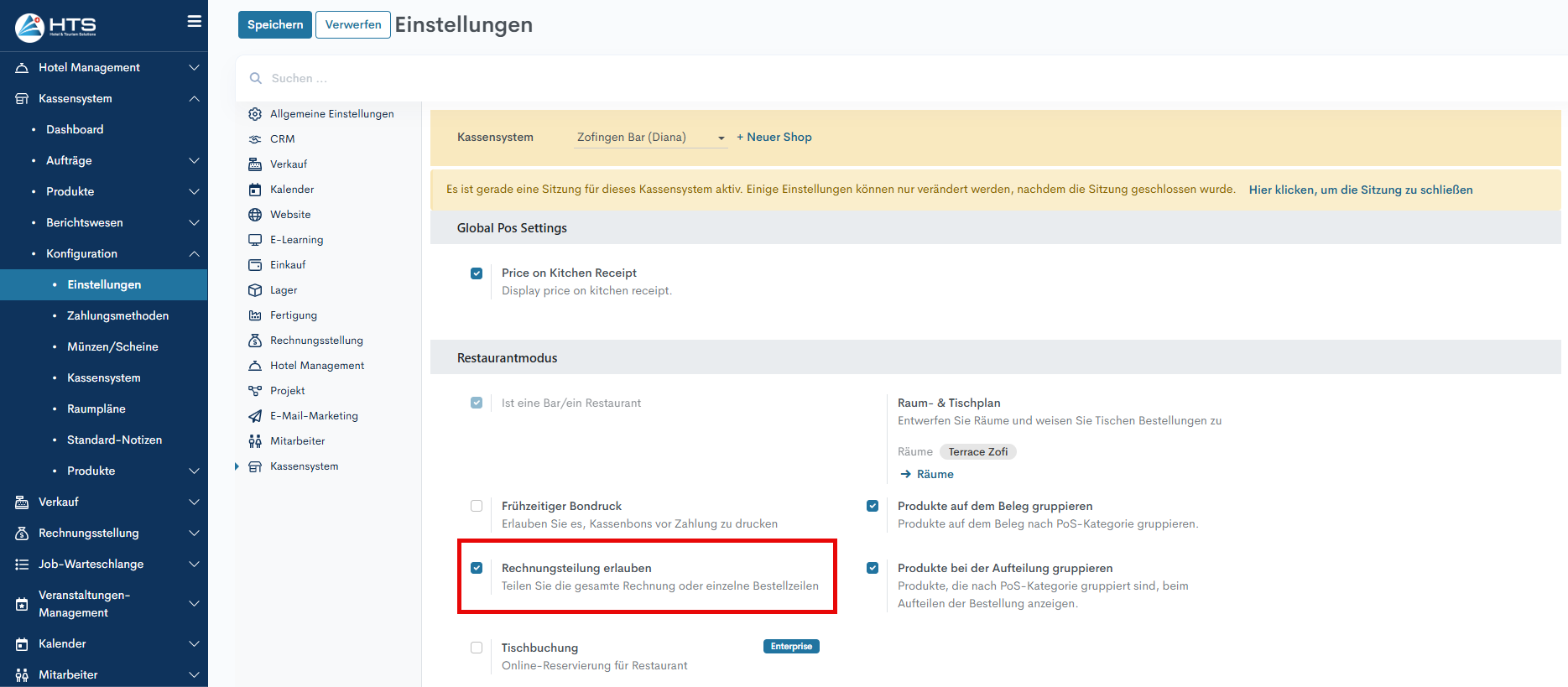 Aktivieren Sie im Abschnitt «Restaurantmodus» das Kontrollkästchen neben «Rechnungsaufteilung erlauben».