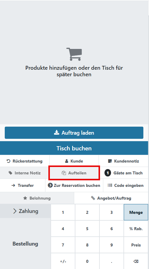 - Wählen Sie die Artikel aus, die separat bezahlt werden sollen.