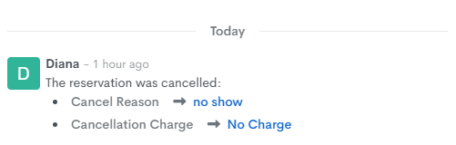 Alle Informationen über den Stornierungsprozess werden im Chatter angezeigt - der Grund für die Stornierung, die Änderung des Status der Reservation, die Erstellung einer Rechnung, usw.