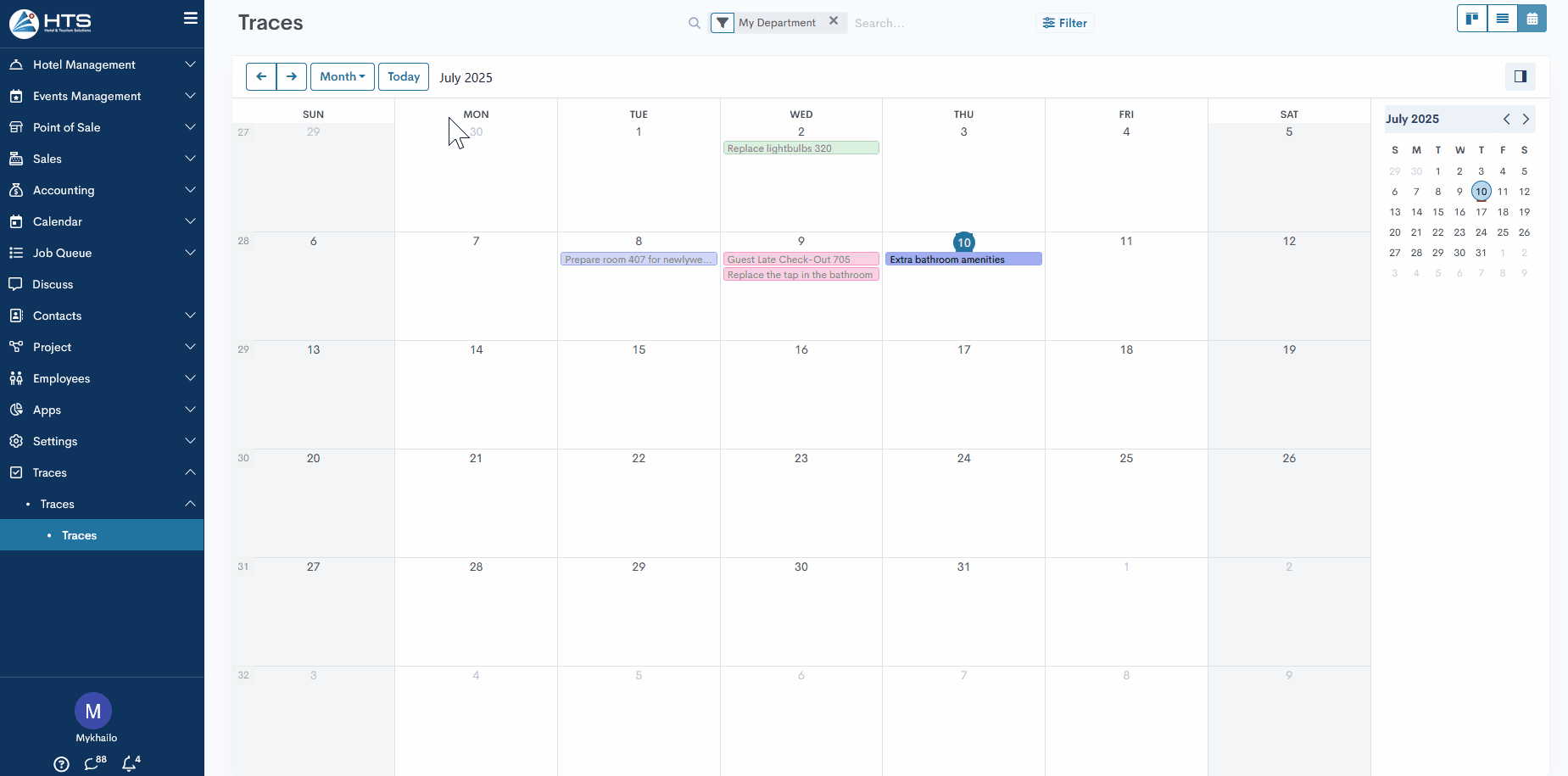 On the right side, a mini calendar is available for easier date navigation. This element can be collapsed to save space if needed.