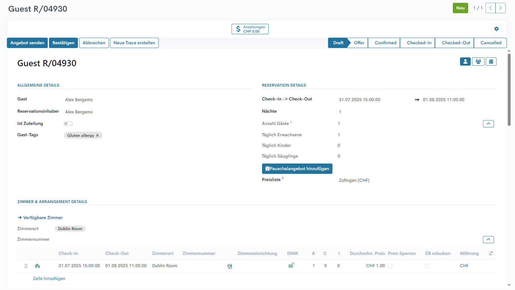 - "Gast" - Wählen Sie einen Gästenamen verfügbar in der Drop-Down Liste oder erstellen Sie einen Neuen;