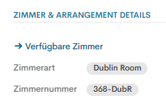 Es besteht die Möglichkeit die Arrangement Zeile zu zeigen oder verbergen um Platz zu sparen. Wenn die Zimmerzeile verborgen ist, zeigt das System die Information über das Arrangement als Schlagwort.