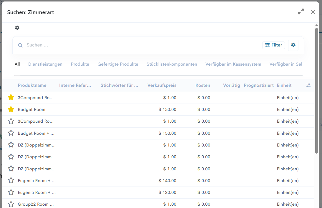 Sind Zimmerarten als „Favorit“ markiert, werden diese ganz oben angezeigt.